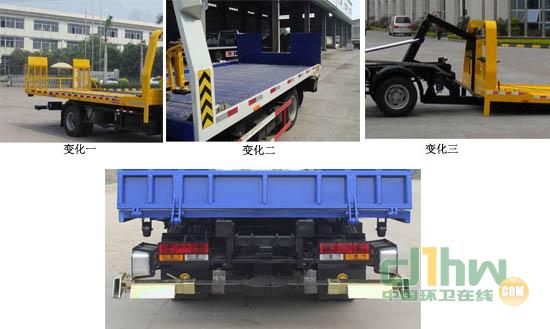 該車用途為道路故障車輛、城市違章車輛及搶險救援等;主要裝置為平板、取力器、液壓油缸組成。整車長度/軸距/后懸對應(yīng)關(guān)系為(mm):7650/3900/2530,8450/4400/2830.選裝擺臂平板裝置和后攔板. 當(dāng)整備質(zhì)量4950kg時,托舉質(zhì)量:4850kg;當(dāng)整備質(zhì)量5400kg時,托舉質(zhì)量:4400kg;側(cè)防護(hù)材料碳鋼/Q235B,螺栓加焊接連接;后防護(hù)由專用裝置替代,下邊緣離地高450mm。ABS生產(chǎn)廠家:威伯科汽車控制系統(tǒng)(中國)有限公司,型號:ABS-E4S/4M。選裝無后托臂裝置??蛇x裝外觀樣式。選裝排半駕駛室,選裝前面罩、前部燈具、前保險杠、遮陽板、徽標(biāo)樣式及安裝位置;選裝后視鏡。