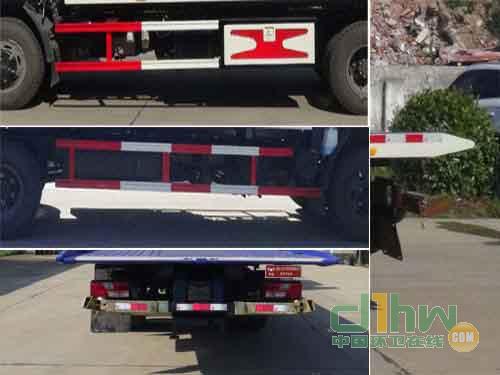 后伸量:50mm;托舉質(zhì)量:3350kg;側(cè)防護(hù)采用材料:Q235,連接方式:螺栓連接;后防護(hù)由專用裝置替代,離地高度:450mm;ABS系統(tǒng)型號:VIE ABS-II,ABS系統(tǒng)生產(chǎn)廠家:上海萬捷汽車控制系統(tǒng)有限公司,該車安裝清障裝置,用于托移道路故障車輛,城市違章車輛等工作.