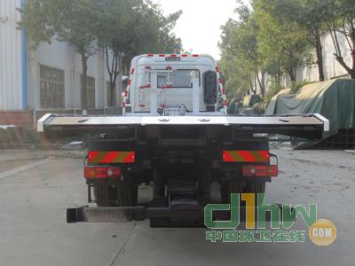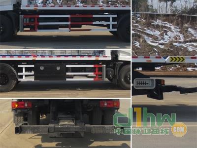 隨底盤選裝駕駛室;選裝后部托板結構;整備質量(kg)/托舉質量(kg)/準乘人數(人)對應關系:9800/5870/2,9800/5805/3,9500/6170/2,9500/6105/3;外形尺寸長(mm)與軸距(mm)對應關系:10080/5600,9480/5000,9180/4700;側面防護裝置材料材質:Q235,連接方式:焊接加螺栓連接;后下部防護裝置因工作裝置干涉無法安裝,故豁免,后部專用裝置非作業(yè)狀態(tài)下的離地高度為470mm;ABS型號:3631010-C2000,4460046440;生產廠家:東科克諾爾商用車制動系統(tǒng)(十堰)有限公司,威伯科汽車控制系統(tǒng)(中國)有限公司;主要專用裝置為托舉裝置,用于道路故障車輛,城市違章車輛清理.
