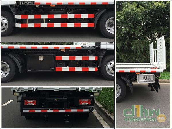 托舉質(zhì)量:355kg;上裝選裝鋁平板型結(jié)構(gòu)時(shí)外形尺寸不變,其整備質(zhì)量為:3620kg,托舉質(zhì)量為:745kg; ABS控制器型號及生產(chǎn)企業(yè):CM4XL-4S/4M,廣州科密汽車電子控制技術(shù)股份有限公司;側(cè)防護(hù)與底盤縱梁間采用螺栓連接,材質(zhì)為Q235A。后防護(hù)所用材質(zhì)為Q235A,采用螺栓連接,斷面尺寸(mm):150×50,離地高度:400mm;發(fā)動機(jī)HFC4DF1-2D2、D25TCIE1對應(yīng)的最大凈功率為83kw、100KW。