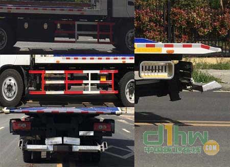托舉質(zhì)量:4910kg。側(cè)防護(hù)材料為Q235,螺栓連接;后防護(hù)由專用裝置替代,下邊緣離地高540mm。僅用軸距4700mm。ABS型號44600XXXX0,廠家威伯科汽車控制系統(tǒng)(中國)有限公司。隨底盤選裝駕駛室,選裝伸縮板。