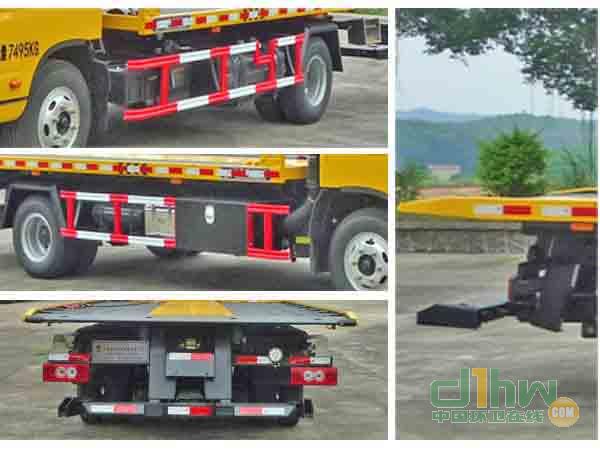 托舉質(zhì)量(kg):2050;選裝后尾板裝置,當(dāng)選裝后尾板裝置時(shí),整備質(zhì)量(kg):5650,托舉質(zhì)量(kg):1650; 后尾板收起狀態(tài)的水平長度為100mm。防護(hù)材料:Q235A碳鋼,連接方式:左右側(cè)面防護(hù)采用焊接連接,后部專用裝置與后防護(hù)相干涉,故后防護(hù)豁免。ABS控制器的型號(hào),ABS-E,生產(chǎn)企業(yè)為威伯科汽車控制系統(tǒng)(中國)有限公司。