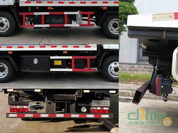 該車主要用于道路摩托車清障,主要專用裝置為平板。托舉質(zhì)量:520kg;側(cè)防護采用冷彎型鋼/Q235,螺栓連接;后防護采用冷彎型鋼/Q235,焊接,截面尺寸120×50mm,離地高450mm。平板后部選裝上尾板,選裝后部結(jié)構(gòu)樣式;隨底盤選裝駕駛室。ABS生產(chǎn)廠家/型號:上海萬捷汽車控制系統(tǒng)有限公司/VIE ABS-II。