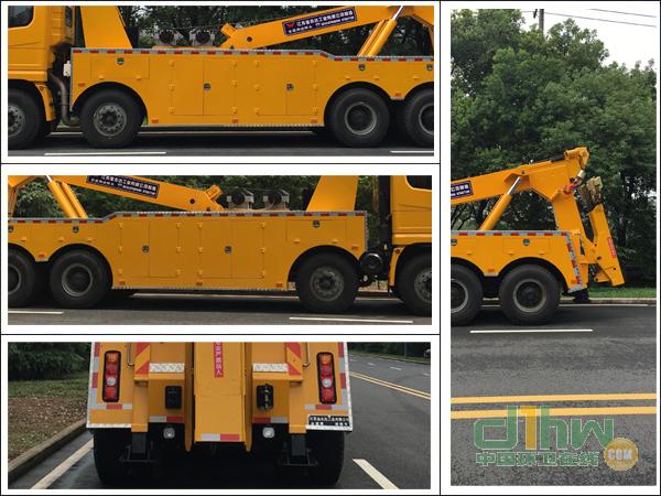 托舉質(zhì)量: 8910kg;ISM11E5 385發(fā)動機(jī)(最大凈功率為274kw), WP10.336E53發(fā)動機(jī)(最大凈功率為242kw),WP12.375E50發(fā)動機(jī)(最大凈功率為271kw);該車僅采用12.00R20 16PR的輪胎;軸距僅選用1800+4575+1400(mm);ABS系統(tǒng)生產(chǎn)廠家及型號為:廣州市科密汽車制動技術(shù)開發(fā)有限公司, 西安正昌電子有限責(zé)任公司, 浙江萬安科技股份有限公司;ABS系統(tǒng)型號:CM4XL-4S/4K(4S/4M),ZQFB-V,VIE ABS-Ⅱ;該車選裝吊托分離型時,不影響整車的性能和外形尺寸;可選裝同系列平頂駕駛室,選裝保險杠,整車對應(yīng)高度為3380mm;車身為裙板結(jié)構(gòu),車身下邊緣離地高度為400mm,后部是清障車專用裝置替代后防護(hù),離地高度380mm。該車專用裝置主要由吊臂,托臂,絞盤,及液壓控制裝置等組成,并能安全,無損傷地清理,裝運(yùn)故障,事故,違章的車輛。