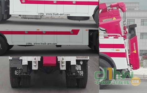 托舉質(zhì)量5560kg。隨底盤選裝駕駛室,僅用5600mm軸距, 側(cè)防護與附車架焊接為一體,后部為托舉專用裝置,后防護豁免,離地高度500mm,超限。ABS系統(tǒng)型號為4460046300,生產(chǎn)企業(yè)為威伯科汽車控制系統(tǒng)(中國)有限公司。安裝具有衛(wèi)星定位功能的行駛記錄儀。