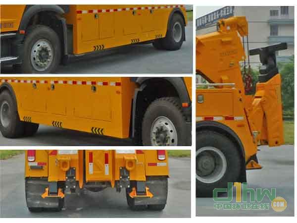 該車安裝清障裝置,用于道路故障車輛,城市違章車輛等工作。托舉質(zhì)量(kg):2370;僅采用軸距(mm):5600。防護(hù)材料:Q235,連接方式:左右側(cè)面防護(hù)為裙邊式結(jié)構(gòu),與車身連為整體;后部專用裝置與后防護(hù)相干涉,故后防護(hù)豁免,離地高度(mm):450。ABS系統(tǒng)型號為4460046300,生產(chǎn)企業(yè)為威伯科汽車控制系統(tǒng)(中國)有限公司。
