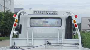 裝3PZ上裝時(shí)整備質(zhì)量4700kg,托舉質(zhì)量:2455kg。選裝3PL(裝有后欄板)或3PH(無后欄板),整備質(zhì)量5100kg,托舉質(zhì)量為2055kg。選裝整車寬度2280mm。選裝B型燈架。選裝無托臂套托架。側(cè)防護(hù)與底盤縱梁間采用螺栓聯(lián)接,材質(zhì)為Q235,后部為專用裝置結(jié)構(gòu)替代后防護(hù)功能,下緣離地高度495mm。ABS型號(hào):APG3550500A6,VIE ABSII,ABS生產(chǎn)企業(yè):浙江亞太機(jī)電股份有限公司,浙江萬安科技股份有限公司
