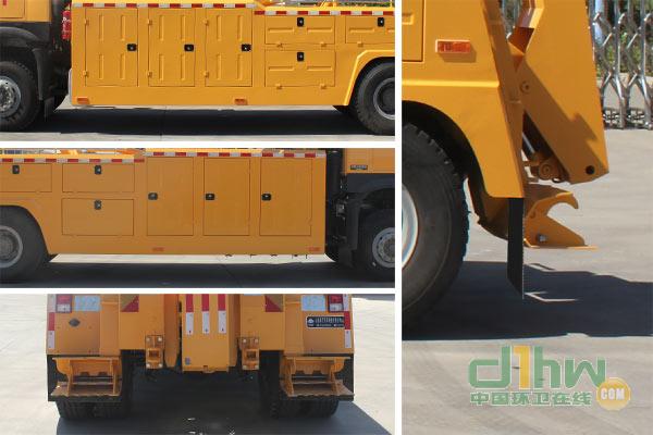 托舉質(zhì)量:5850kg。裝有托臂,吊臂,絞盤(pán),支腿等總成,左右車(chē)身為箱形結(jié)構(gòu),適用于排除道路上的故障車(chē)輛。下部離地高度430mm,材質(zhì):Q235,板厚3mm,起到側(cè)防護(hù)作用。后部裝有托臂裝置,和支腿支腳裝置,起到后防護(hù)作用,離地高度為495mm。該車(chē)在側(cè)后面粘貼反光標(biāo)識(shí)。安裝帶有衛(wèi)星定位功能的行駛記錄儀。ABS系統(tǒng)型號(hào)為4460046300,生產(chǎn)企業(yè)為威伯科汽車(chē)控制系統(tǒng)(中國(guó))有限公司。
