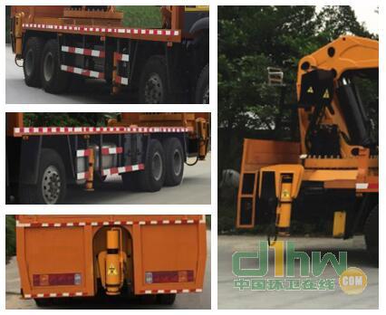 1.本車型已安裝側(cè)面和后部反光標(biāo)識.2.上裝托舉裝置起重機(jī):折疊臂式SQ1000,托舉質(zhì)量為4000Kg;選裝SQ1200,托舉質(zhì)量為4000Kg;選裝SQ3200托舉質(zhì)量為4000Kg;選裝尾部支腿;3.防護(hù)材料均為Q235,防護(hù)均采用螺栓連接,后部防護(hù)裝置的斷面尺寸為120毫米×50毫米,離地高度為500毫米.4.隨底盤ZZ5437V4667E1 選裝駕駛室,選裝高位保險杠,選裝面罩.5.安裝ABS系統(tǒng)型號為4460046300,生產(chǎn)企業(yè)為威伯科汽車控制系統(tǒng)(中國)有限公司,該車安裝具有衛(wèi)星定位功能的行駛記錄儀。