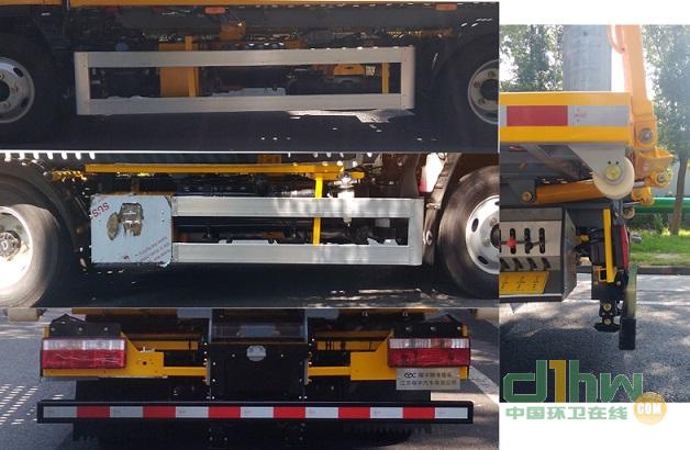 托舉質(zhì)量:365kg;該車上裝選裝鋁平板型結(jié)構(gòu)時外形尺寸不變,其整備質(zhì)量為:3610kg,托舉質(zhì)量為:755kg。該車隨底盤選裝駕駛室;隨底盤選裝框架視鏡。側(cè)防護(hù)與底盤縱梁間采用螺栓聯(lián)接,材質(zhì)為Q235A;后防護(hù)與副車架間采用螺栓連接,材質(zhì)為Q235A, 后防護(hù)斷面尺寸(mm):100×50,離地高度410mm。該車尾板收起狀態(tài)的水平長度為:150mm。ABS型號:CM4XL-4S/4M,ABS生產(chǎn)企業(yè):廣州科密汽車電子控制技術(shù)股份有限公司。