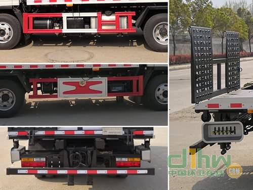 隨底盤選裝駕駛室。選裝擺臂式平板及后欄板,選裝不同外形后欄板。托舉質(zhì)量:300kg,365kg。選裝后防護結(jié)構(gòu),后下部防護裝置材料:Q235,連接方式:焊接,防護截面尺寸(mm)50×120,離地高450mmABS生產(chǎn)廠家:威伯科汽車控制系統(tǒng)(中國)有限公司,型號:ABS-E 4S/4M;生產(chǎn)廠家:浙江萬安科技股份有限公司,型號:VIE ABS-II。側(cè)面防護裝置材料材質(zhì):Q235,連接方式:焊接。后下部防護裝置因工作裝置干涉無法安裝故豁免。