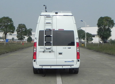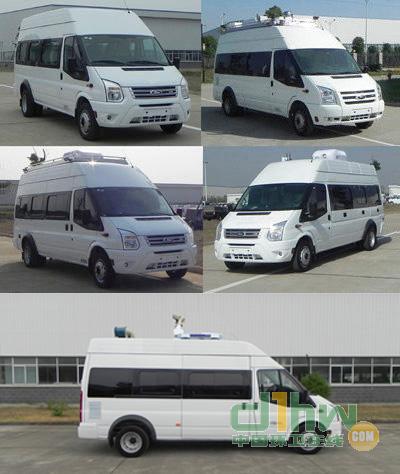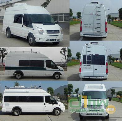 隨底盤選裝側拉門、普通前大燈。選裝發(fā)電機及發(fā)電機艙門。選裝車頂前額位置凸臺,車頂可單獨或部分選裝設備平臺、換氣扇、空調、升降照明燈、場地照明燈、氣象儀。不裝發(fā)電機及蓄電池時,整備質量為3450kg。不裝車頂設備高2595mm,選裝車頂設備平臺高2800mm,選裝車載空調高2960mm,選裝升降照明燈(帶攝像頭)高3130mm,選裝升降照明燈(無攝像頭)高3015mm,選裝氣象儀高3490mm。后側窗及尾門窗可全部或部分選裝盲窗,選裝尾門左側或右側位置爬梯。車身一側或兩側選裝玻璃上掀窗或盲窗上掀窗,車頂一側或兩側選裝遮陽蓬。裝備檢測工作桌、供電系統(tǒng)、檢測設備等專用裝置。