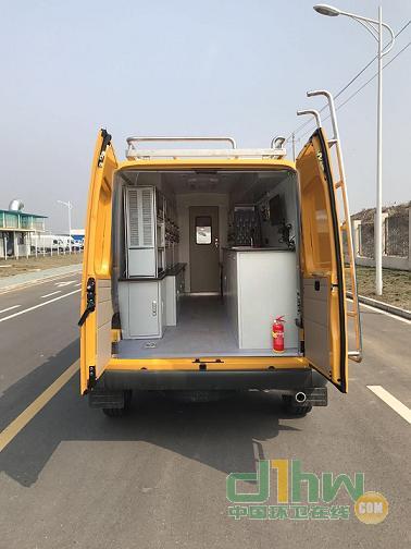 車輛裝載有電源系統(tǒng)、檢測臺等設備用于移動檢測.選裝高頂、泛光燈、車頂平臺、云臺攝像、后爬梯、后上車踏板、黑色前大燈.選裝側(cè),后車窗部分或全部盲窗,選裝車身兩側(cè)車窗上掀窗.選裝高頂時,整車高度為2625mm,選裝高頂、泛光燈、車頂平臺、云臺攝像時,整車高度2820mm.無選裝時,整車高度為2240mm.選裝泛光燈、車頂平臺、云臺攝像時,整車高度為2440mm.選裝后上車踏板、后爬梯時,車輛長度為5696mm.ABS系統(tǒng)控制器型號:APG3550500G,ABS系統(tǒng)控制器生產(chǎn)企業(yè):浙江亞太機電股份有限公司.發(fā)動機最大凈功率83KW.選裝梯架,上掀門.