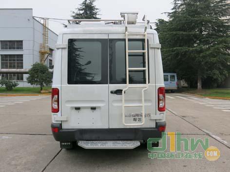 裝載有服務柜/臺及通信檢測設(shè)施.選裝護欄,上掀門,側(cè)后部部分盲窗,換氣扇,粘接窗 。選裝不帶車頂平臺,加寬后踏板,后爬梯,喇叭,液晶顯示屏,照明燈,頂置空調(diào),云臺攝像機,上掀窗,前平臺。整車長度5025mm,整車高度2940mm。不選裝加寬后上車踏板整車長度為4845mm,選裝短款加寬踏板長度4905mm。車頂選裝云臺,攝像機高度2940mm,選裝頂置空調(diào)高度2795mm,選裝喇叭,泛光燈,LED屏,護欄時整車高度2695mm,選裝護欄整車高度2600mm,車頂無選裝高度2510mm。整車整備質(zhì)量2650kg,車內(nèi)選裝專用流動作業(yè)設(shè)備整備質(zhì)量可為2780kg,2915kg。隨底盤選裝 ABS ,ABS 系統(tǒng)控制器型號 :BOSCH ABS8, ABS 系統(tǒng)控制 器生產(chǎn)企業(yè) : 博世汽車部件 ( 蘇州 ) 有限公司。選裝側(cè)拉門,選裝F1CE34818發(fā)動機最大凈功率105kW,選裝SOFIM8140.47Z5對應凈功率為88kW..隨底盤選裝一種前圍外形及燈具、粘接窗.