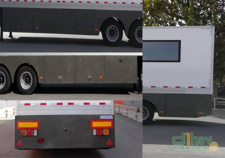 車廂頂部封閉,不可開(kāi)啟.ABS生產(chǎn)廠家:廣州科密汽車電子控制技術(shù)股份有限公司,ABS型號(hào):CM2XL-4S/2K。側(cè)下防護(hù)和后下部防護(hù)裝置為裙板機(jī)構(gòu),離地高度470mm,材料為Q235。該車用途為對(duì)生產(chǎn)產(chǎn)品的質(zhì)量進(jìn)行檢測(cè);專用裝置為固定鉚接設(shè)備,頻率檢測(cè)設(shè)備.后部選裝單開(kāi)門。