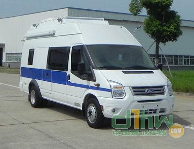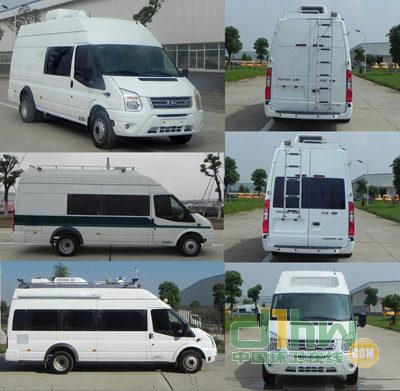 隨底盤選裝側(cè)拉門、普通前大燈。選裝發(fā)電機(jī)及發(fā)電機(jī)艙門。選裝車頂前額位置凸臺,車頂可單獨(dú)或部分選裝設(shè)備平臺、換氣扇、空調(diào)、升降照明燈、場地照明燈、氣象儀。不裝發(fā)電機(jī)及蓄電池時(shí),整備質(zhì)量為3450kg。不裝車頂設(shè)備高2595mm,選裝車頂設(shè)備平臺高2800mm,選裝車載空調(diào)高2960mm,選裝升降照明燈(帶攝像頭)高3130mm,選裝升降照明燈(無攝像頭)高3015mm,選裝氣象儀高3490mm。后側(cè)窗及尾門窗可全部或部分選裝盲窗,選裝尾門左側(cè)或右側(cè)位置爬梯。車身一側(cè)或兩側(cè)選裝玻璃上掀窗或盲窗上掀窗,車頂一側(cè)或兩側(cè)選裝遮陽蓬。裝備檢測工作桌、供電系統(tǒng)、檢測設(shè)備等專用裝置。