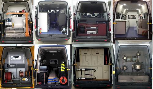 車頂可單獨或部分選裝設備平臺,換氣扇,空調,升降照明燈,場地照明燈,選裝尾門爬梯,后上車踏板。不裝車頂設備高2200mm,選裝車頂設備平臺車高2340mm,選裝換氣扇或場地照明燈高2340mm,選裝車頂空調或不裝攝像機的升降照明燈高2550mm,選裝帶攝像機的升降照明燈高2710mm。選裝后上車踏板時對應車長/后懸:4866/1086。配備電冰箱,UPS電源系統(tǒng),繞線盤,洗手池等專用設備.