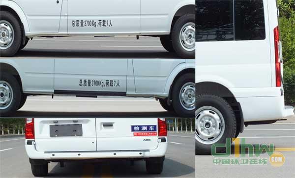 該車型內(nèi)部采用高等級板材家裝,車內(nèi)布置有頂燈、消毒燈和攝像頭,車內(nèi)安裝專用檢測設(shè)備、操作臺、洗手池,用于食品藥品檢測.ABS型號:6C11 2M110A*,生產(chǎn)廠家:博世汽車部件(蘇州)有限公司.發(fā)動機(jī)最大凈功率99kw.該車裝備行駛記錄儀.該車僅采用215/75R 16LT 10PR輪胎.