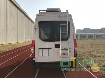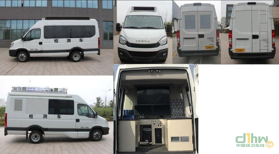 選裝高位制動燈.選裝上掀門、前額凸臺、側后部部分盲窗、工作平臺、換氣扇、喇叭、LED顯示屏及高桿燈.車頂無選裝時整車高度為2711mm,選裝換氣扇高度為2800mm,選裝車頂平臺、喇叭、換氣扇、顯示屏高度為2880mm,車頂選裝高桿燈、頂置空調高度為2930mm,車頂平臺裝高桿燈高度為3020mm.裝備有檢測車專用工作臺、工具柜及專用設備.ABS系統(tǒng)控制器型號:BOSCH ABS9, ABS系統(tǒng)控制器生產企業(yè):BOSCH公司.發(fā)動機最大凈功率105kW.選裝ESP.