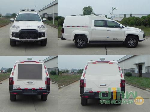 后側(cè)及尾部盲窗選裝與車身同色。車輛后部選裝顯示屏。車頂可部分或全部選裝升降照明燈、云臺攝像機。不選裝時高2035mm。選裝升降照明燈高:2097mm(無攝像機),2485mm(帶云臺攝像機)。裝備UPS供電設(shè)備、檢測工作桌柜等專用裝置。ABS系統(tǒng)型號/生產(chǎn)廠家:EV5011/博世汽車部件(蘇州)有限公司。JX4G20A5L發(fā)動機最大凈功率149kw。不裝車頂設(shè)備固定架及車頂設(shè)備時,車高1950mm,選裝輕質(zhì)檢測設(shè)備工作桌柜時整備質(zhì)量為2100kg,對應(yīng)總質(zhì)量為2425kg。