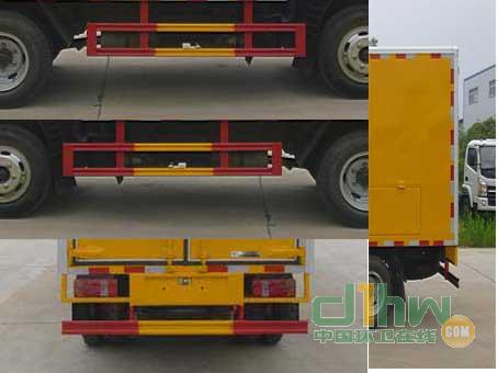 隨底盤選裝駕駛室.1.車廂頂部封閉,不可開啟;2.側防護及后下部防護材料Q235,連接方式螺栓連接;后防護焊接連接,后下部防護離地高度420mm,斷面高100mm斷面寬50mm.3.該車配備車載清洗工作臺, 不銹鋼壁掛式洗眼器等專用設備,主要用于食品,衛(wèi)生,環(huán)保等方面的檢測。ABS系統(tǒng)控制器型號為:CM4Y.ABS系統(tǒng)控制器生產(chǎn)廠家為:廣州科密汽車電子控制技術股份有限公司.