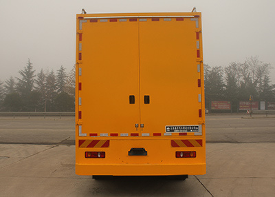 該車車廂頂部封閉不可開啟,駕駛室頂部可選裝不帶導(dǎo)流罩;車輛側(cè)面及后下部防護(hù)裝置的材質(zhì):Q235; 側(cè)防護(hù)為裙板式結(jié)構(gòu),后下部防護(hù)裝置由車身結(jié)構(gòu)代替,離地高度:480mm。該車安裝ABS,ABS型號(hào):3631010-C2000,4460046440;生產(chǎn)廠家:東科克諾爾商用車制動(dòng)系統(tǒng)(十堰)有限公司,威伯科汽車控制系統(tǒng)(中國)有限公司。專用裝置型號(hào):TAG5160XJC-5000000,生產(chǎn)企業(yè)為山東泰開汽車制造有限公司。安裝有衛(wèi)星定位系統(tǒng)的行駛記錄儀。選用輪胎是:9.00R20 16PR,10.00-20 16PR/18PR,10.00R20 14PR/16PR/18PR,10R22.5 16PR,275/80R22.5 16PR/18PR,275/70R22.5 16PR/18PR,295/80R22.5 16PR/18PR。該車主要有汽車底盤、車廂、一體化機(jī)柜、標(biāo)準(zhǔn)電流互感器、電動(dòng)滑移軌道小車、電抗器、互感調(diào)壓器、集控箱、車廂內(nèi)部照明裝置等組成,將各裝置合理布局在車廂內(nèi)部。該車配備專業(yè)設(shè)備對(duì)高壓電流、電壓互感器進(jìn)行周期現(xiàn)場校驗(yàn)的專用車輛,實(shí)現(xiàn)了電力互感器現(xiàn)場校驗(yàn)設(shè)備不下車、無需人力搬運(yùn)、無需借助外部吊具,使現(xiàn)場試驗(yàn)實(shí)現(xiàn)了機(jī)動(dòng)化、集成化、自動(dòng)化。