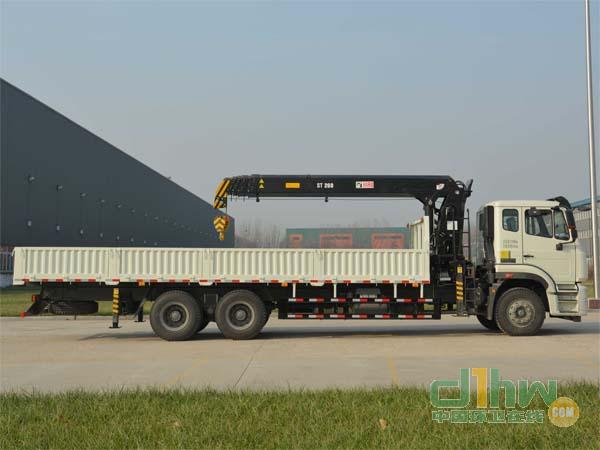該車上裝隨車起重機(jī),型號/質(zhì)量(Kg)/最大起升載荷(Kg)為:ST260/4080/10000,ST220/4080/8000;側(cè)面及后下部防護(hù)裝置材料均為Q235A,均為螺栓連接,后下部防護(hù)裝置斷面尺寸為100mm×50mm,離地高度為540mm;發(fā)動機(jī)油耗值均為35.1L/100km;ABS型號為4460046300,生產(chǎn)廠家為威伯科汽車控制系統(tǒng)(中國)有限公司;安裝帶衛(wèi)星定位功能的行駛記錄儀;選裝貨箱欄板結(jié)構(gòu),可不選裝高空座椅操作形式,可不選裝液壓油箱在隨車起重機(jī)轉(zhuǎn)臺上,選裝引起的質(zhì)量變化在3%以內(nèi)。