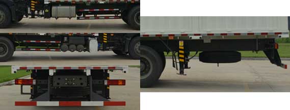 僅選用5800+1350mm軸距底盤;隨底盤選裝限速裝置時(shí),最高車速為89km/h;僅選用鋼板彈簧懸架型式;可不選裝后風(fēng)窗;選裝貨廂欄板結(jié)構(gòu)??蛇x裝ST220直臂式隨車起重機(jī),ST260和ST220隨車起重機(jī)可不選裝高空座椅操縱形式,可不選裝在隨車起重機(jī)轉(zhuǎn)臺(tái)布置液壓油箱形式。高空座椅和液壓油箱引起的質(zhì)量變化在3%以內(nèi)。駕駛室準(zhǔn)乘人數(shù)為2人時(shí),額定載質(zhì)量9170kg;駕駛室準(zhǔn)乘人數(shù)為3人時(shí),額定載質(zhì)量9105kg。隨車起重機(jī)型號(hào)/質(zhì)量(kg)/最大起升載荷(kg)/對(duì)應(yīng)關(guān)系為:ST260/4100/10000;ST220/4080/8000。選裝MC07.24-50和MC07.24-52發(fā)動(dòng)機(jī)時(shí)油耗申報(bào)值為35.06L/100km;選裝MC07.28-50和MC07.28-52發(fā)動(dòng)機(jī)時(shí)油耗申報(bào)值為35.11L/100km;選裝MC07.31-50和MC07.31-52發(fā)動(dòng)機(jī)時(shí)油耗申報(bào)值為35.25L/100km;選裝MC07.34-50和MC07.34-52發(fā)動(dòng)機(jī)時(shí)油耗申報(bào)值為35.45L/100km;選裝MC07.35-50發(fā)動(dòng)機(jī)時(shí)油耗申報(bào)值為35.46L/100km。側(cè)面及后下部防護(hù)裝置所用材料材質(zhì)為Q235A,連接方式為螺栓連接,后下部防護(hù)裝置的斷面尺寸為100mm×50mm,離地高度530mm。ABS系統(tǒng)型號(hào)為4460046300,生產(chǎn)企業(yè)為威伯科汽車控制系統(tǒng)(中國(guó))有限公司。安裝具有衛(wèi)星定位功能的行駛記錄儀。