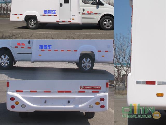 頂部封閉不可開啟.該車車廂左右兩側(cè)開窗.車體左右窗戶數(shù)量和位置可以調(diào)整。該車僅選用軸距(mm)為3850,4175.隨底盤選裝選裝鋁輪圈,不鍍鉻前水箱面罩,前圍,圖形商標(biāo)等。該車主要專用裝置電臺(tái),顯示器,電腦,監(jiān)視器,攝像頭,清水箱等稽查用配套設(shè)施。該車側(cè)面及后面為客廂式裙邊結(jié)構(gòu),側(cè)面裙邊離地高360mm,后部裙邊離地440mm。ABS生產(chǎn)企業(yè):博世汽車部件(蘇州)有限公司,ABS型號(hào):ABS 9.0,ESP9。發(fā)動(dòng)機(jī)最大凈功率97.5kW。