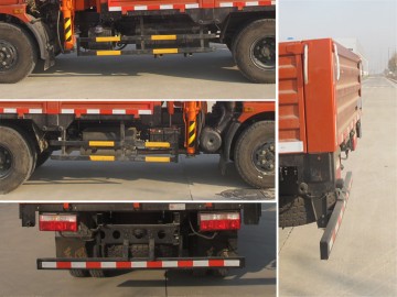 該車上裝為隨車起重機(jī),型號(hào)、最大起升質(zhì)量(kg)、自重(kg)一一對(duì)應(yīng)為:QYS-6.3、6300、3200;QYS-5、5000、2420;QYS-6.3Z、6300、2800;QYS-5Z、5000、3140。側(cè)部防護(hù)和后部防護(hù)的材料均為Q235A鋼板,連接方式均為螺栓連接。后部防護(hù)的截面尺寸為100mm×50mm,離地高500毫米。隨底盤安裝ABS,ABS系統(tǒng)生產(chǎn)廠家,型號(hào) :焦作博瑞克控制技術(shù)有限公司,J ABS.安裝具有衛(wèi)星定位功能的行駛記錄儀。發(fā)動(dòng)機(jī)YC4EG170-50對(duì)應(yīng)的油耗值(L/100km)為26.0。選裝欄板形式。選裝高位和中位操作座椅。