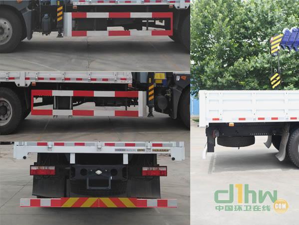 隨底盤選裝前面罩,前保險(xiǎn)杠,前組合燈具以及前霧燈. 隨底盤安裝ABS,ABS系統(tǒng)生產(chǎn)廠家,型號(hào):焦作博瑞克控制技術(shù)有限公司,J ABS.安裝具有衛(wèi)星定位功能的行駛記錄儀。側(cè)防護(hù):材質(zhì)Q235,連接方式:螺栓連接.后下防護(hù):材質(zhì)Q235.連接方式:螺栓連接.斷面尺寸120×60mm,離地高度390mm;隨車起重機(jī)型號(hào)/隨車起重機(jī)質(zhì)量(kg)/最大起升載荷(kg)分別為:SKMS6.3S3K/2780/6300;選用YC4EG170-50、ISD160 50發(fā)動(dòng)機(jī)對(duì)應(yīng)的油耗值(L/100km)為26.0,26.3;選裝貨箱風(fēng)格。