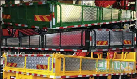 直臂吊機(jī)型號/最大額定起升質(zhì)量(kg)/吊機(jī)自重(kg)/載質(zhì)量利用系數(shù)為:SQ12S/12000/4316/1.33;SQ10S/10000/3955/1.41 ;折疊臂吊機(jī)型號/最大額定起升質(zhì)量(kg)/吊機(jī)自重(kg)為SQ12ZK3Q/12000/4468/1.36,SQ10ZK3Q/10000/3580/1.34;2.該車選用2150+4500+1350mm軸距,3.發(fā)動機(jī)型號/功率/油耗(L/100km)對應(yīng)關(guān)系:YC6L310-50/228/40.5,WP7.300E51/220/40.3,ISL8.9-315E50A/232/40.8。 4.側(cè)防護(hù)及后下部防護(hù)裝置均采用Q235材質(zhì),采用螺栓和焊接方式連接,后下部防護(hù)尺寸:130×50(mm),離地面高度480mm。 5.ABS系統(tǒng)生產(chǎn)廠家:廣州科密汽車電子控制技術(shù)股份有限公司/型號:CM4XL-4S/4K(4S/4M)。7.安裝具有衛(wèi)星定位功能的行駛記錄儀。8.選裝廂體外形和吊機(jī)。9.隨底盤選裝燈具及面罩