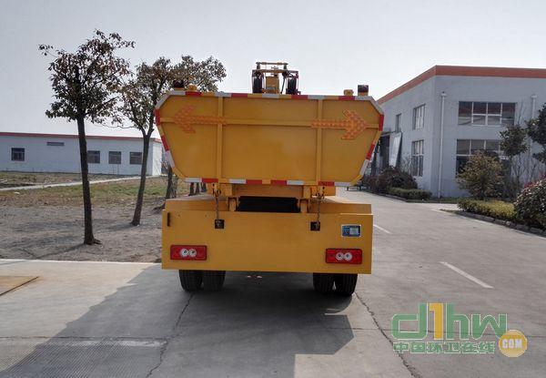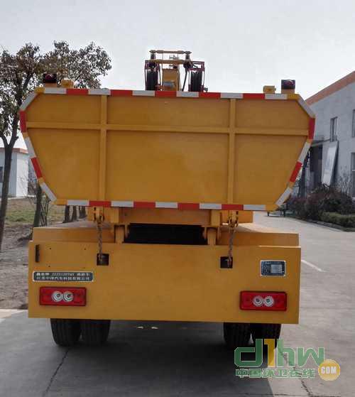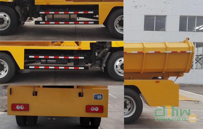 1.頂部除進料口外其他部分封閉,不可開啟;2.自卸方式:后卸式;該車通過提升機構(gòu)將污泥桶,提升到一定高度通過翻轉(zhuǎn)軸實現(xiàn)翻轉(zhuǎn)卸泥,使污泥卸至車廂內(nèi),通過油缸將車廂舉升至一定高度,開啟后門,將污泥卸出;3.側(cè)面防護裝置和后下部防護裝置材料為Q235A,與車輛的連接方式均為螺栓連接,后下部防護斷面尺寸為100×50(mm),最大離地高度500mm;4.ABS型號:VIE ABS-II,