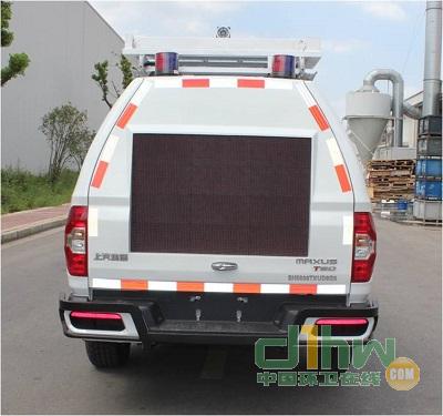 選用軸距為3155mm的底盤.選裝前圍、前后防撞杠(長(zhǎng)5570mm,接近角/離去角為22°/20°,前懸/后懸為1050mm/1365mm)、左右側(cè)爬梯(寬2175mm).適用于一般巡邏作業(yè)要求.專用裝置:云臺(tái)、高桿照明燈、槍機(jī)、喇叭、折疊LED顯示屏、設(shè)備柜、尾門LED顯示屏(行駛過程中LED顯示屏處于關(guān)閉狀態(tài));ABS型號(hào):ABS9.0,ESP9.0;ABS生產(chǎn)企業(yè):博世汽車部件(蘇州)有限公司,博世汽車部件(蘇州)有限公司;發(fā)動(dòng)機(jī)最大凈功率為160kW.