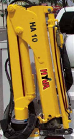 安裝折臂式起重機(jī)型號(hào)為HY08,HA10,起重機(jī)質(zhì)量都為160Kg,最大起升載荷都為445Kg.該車(chē)隨整車(chē)選裝側(cè)腳踏板,選裝一種輪輞,選裝后貨箱兩側(cè)繩鉤,選裝后部支腿,選裝折臂式起重機(jī);發(fā)動(dòng)機(jī)最大凈功率99KW.ABS系統(tǒng)控制器型號(hào):APG3550500G,生產(chǎn)廠家:浙江亞太機(jī)電股份有限公司;