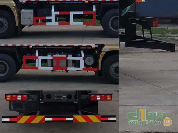 罐體有效容積:12.5立方米;罐體長軸:2200mm,罐體短軸:1200mm,罐體長度:7300mm。該車所用底盤軸距僅為4375+1400(mm)。ABS系統(tǒng)生產(chǎn)廠家:廣州市科密汽車制動技術(shù)開發(fā)有限公司;ABS系統(tǒng)型號:CM4XL-4S/4K(4S/4M)。側(cè)、后防護(hù)裝置材料:Q235A;連接方式:螺栓連接;后防護(hù)斷面尺寸140mm×58mm,后防護(hù)離地高度為500mm。安裝具有衛(wèi)星定位功能的行駛記錄儀。WP10.336E53型發(fā)動機(jī)對應(yīng)油耗值36.94;WP7.300E51型發(fā)動機(jī)對應(yīng)油耗值35.96。