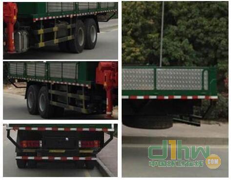 1.本車(chē)型已安裝側(cè)面和后部反光標(biāo)識(shí);2.上裝折臂式起重機(jī)型號(hào)為BS430,自重為5000kg,最大起升載荷為10000kg;選裝折臂式起重機(jī)型號(hào)為BS400,PK42502,GD52000,自重為5000kg,最大起升載荷為10000kg;選裝直臂式起重機(jī)型號(hào)為SPS30000,起重機(jī)質(zhì)量為5000kg,最大起升載荷為10000kg,3.防護(hù)材料均為Q235,與車(chē)架均采用螺栓聯(lián)接,后防護(hù)截面尺寸為120mm×50mm,離地高為500毫米;4.隨底盤(pán)廠(chǎng)選裝駕駛室,選裝不同的貨箱欄板結(jié)構(gòu);5.該車(chē)安裝帶衛(wèi)星定位功能的行駛記錄儀.ABS型號(hào)/企業(yè):ABS-E 4S/4M/威伯科汽車(chē)控制系統(tǒng)有限公司.該車(chē)僅用5850+1300mm和5850+1350mm軸距.