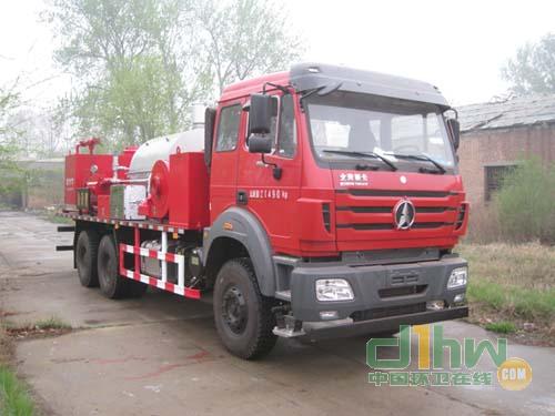 油田專用作業(yè)車,由三缸柱塞泵、車載特種鍋爐等組成,用于油田洗井靖蠟作業(yè)??蛇x裝功能參數相同的XJⅡ或XJⅢ三缸柱塞泵,裝XJⅡ泵時總質量21490、軸荷5180/8155/8155、整備質量21360;裝XJⅢ泵時總質量20730、軸荷4960/7885/7885、整備質量20600??蛇x裝983D,TM1200-1,DMCT1000三種反光標識和選裝DA-32a、DA-32b和VCDM-3兩種后尾部標志板,選裝時固定位置相同,對外形無影響。僅用軸距(mm):4450+1450。右側面及后下部防護裝置材質為Q235A,均為螺栓連接,后下部防護截面為矩形,截面尺寸(mm):120×53,離地高度:500mm。ABS生產廠家:東科克諾爾商用車制動系統(十堰)有限公司,ABS型號:3550D-1010。