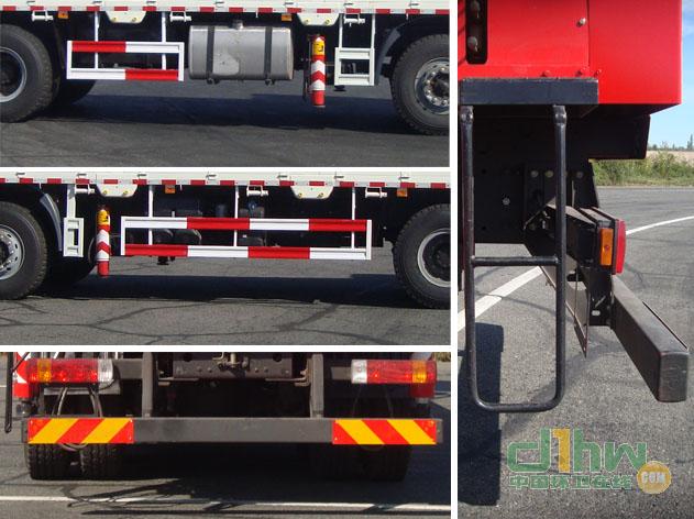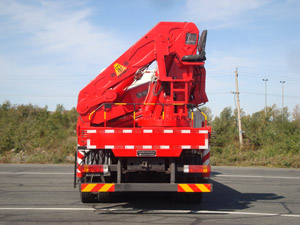上裝起重機(jī)SQZ132額定起升質(zhì)量6300Kg重量2600Kg,SQZ105額定起升質(zhì)量5000Kg,重量2200Kg,側(cè),后防護(hù)裝置為金屬護(hù)欄,材質(zhì)Q235,連接方式為焊接連接,斷面高度120mm,斷面寬60mm,離地高度540mm。選裝無操縱平臺形式。
