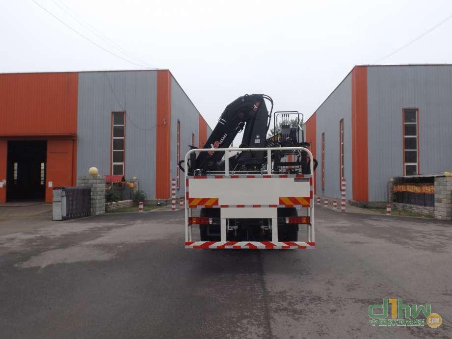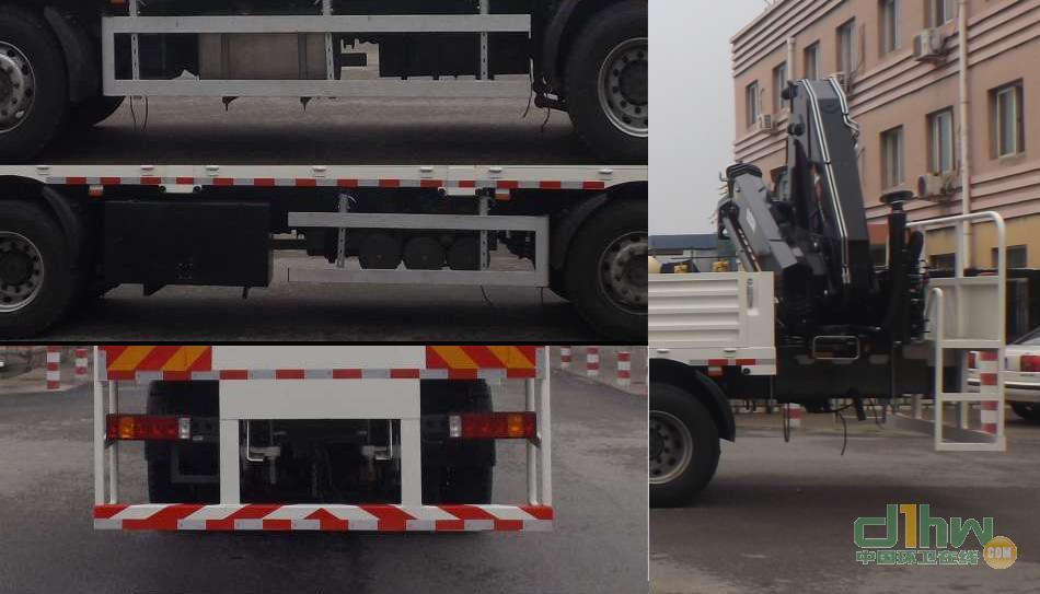 隨底盤選裝駕駛室。該車側(cè)防護(hù)裝置所用材料為鋁材質(zhì),與車架螺栓連接。后下部防護(hù)裝置所用材料為Q235,與車架焊接固定,截面尺寸為:120×60×2400(mm),離地高480mm。ABS系統(tǒng)型號為4460046300,生產(chǎn)企業(yè)為威伯科汽車控制系統(tǒng)(中國)有限公司。選裝起重機(jī)型號,最大起重載荷,自重分別為PK(SPK)12000,6500kg,2500kg;PK(SPK)15500,6600kg,2550kg;PK(SPK)23500,6900kg,2600kg;HIAB111,6600kg,2350kg;HIAB178,6600kg,2350kg;HIAB288,6900kg,2450kg;HIAB 244,6800kg,2550kg;SQZ-6.3(QYS-6.3Z),6100kg,2430kg;SQZ-8(QYS-8Z),7000kg,2550kg;SQZ-12(QYS-12Z),7000kg,2600kg;HB120(HV147),6400kg,2250kg;HB150(HV197),6600kg,2450kg;HB250,6800kg,2650kg。起重機(jī)型號變化引起的質(zhì)量變化在3%以內(nèi)。后平臺選裝不加裝爬梯過道。