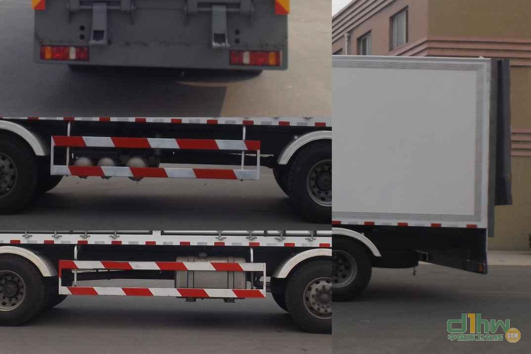 車(chē)廂頂部封閉,不可開(kāi)啟.。隨底盤(pán)選裝駕駛室,側(cè)后防護(hù)裝置材料為Q235,側(cè)防護(hù)采用螺栓緊固于副梁上,后防護(hù)采用螺栓緊固于縱梁上,車(chē)廂后部為折疊液壓尾板,后防護(hù)由液壓尾板代替,離地高度500mm。選裝側(cè)圍板代替?zhèn)确雷o(hù)。ABS系統(tǒng)型號(hào)為4460046300,生產(chǎn)企業(yè)為威伯科汽車(chē)控制系統(tǒng)(中國(guó))有限公司。僅選用軸距為1950+4600+1400底盤(pán)。選裝瓦楞板箱體、液壓圍板。