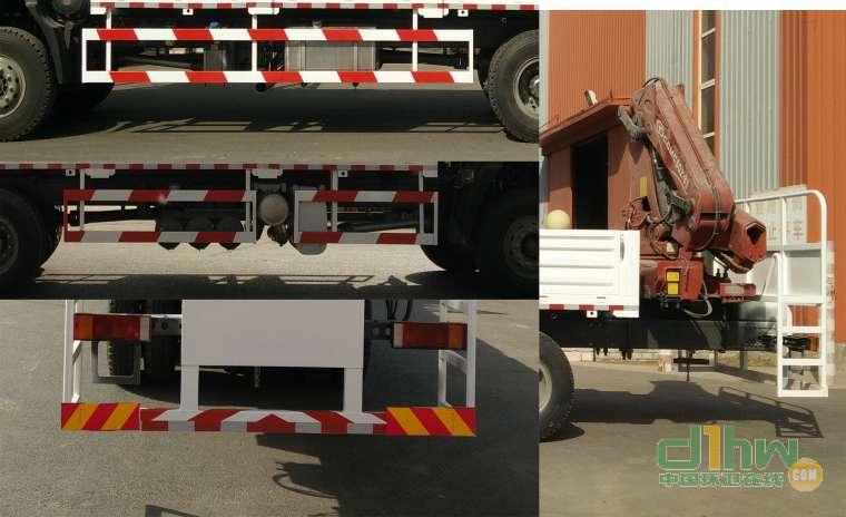 隨底盤選裝駕駛室,側(cè)后防護(hù)裝置材料為Q235,側(cè)防護(hù)采用螺栓緊固于副梁上,后下部防護(hù)裝置所用材料為Q235,與車架焊接固定,截面尺寸為:120×60,離地高400mm。ABS系統(tǒng)型號(hào)為4460046300,生產(chǎn)企業(yè)為威伯科汽車控制系統(tǒng)(中國)有限公司。選裝起重機(jī)型號(hào),最大起重載荷,自重分別為。(SPK15500,F135)6600kg,2550kg。起重機(jī)型號(hào)變化引起的質(zhì)量變化在3%以內(nèi)。安裝具有衛(wèi)星定位功能的行駛記錄儀。該車用于計(jì)量衡器的檢測。砝碼是計(jì)量檢衡車中的固定裝置,砝碼可以選擇形狀不同但總質(zhì)量相同的圓柱體,矩型等形狀。專用裝置為隨車起重機(jī),砝碼。砝碼總質(zhì)量11000kg。