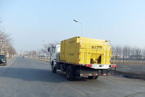 Y5120TYH型路面養(yǎng)護(hù)車是工程原材料及附屬機(jī)具的分裝載體,各種機(jī)載物料均可在其保質(zhì)期內(nèi)隨機(jī)分存、待命狀態(tài),拌合成型全過程均于常溫條件下一機(jī)完成。精準(zhǔn)的計(jì)算機(jī)車載物料配送系統(tǒng),輸入路面坑槽幾何尺寸和松鋪系數(shù),即可得到每次所需混合材料的準(zhǔn)確用量。MOH材料可通過隨機(jī)輕型震動壓實(shí)機(jī)具壓實(shí)成型,材料次生結(jié)構(gòu)快速生成,其密實(shí)性、抗變形性、耐久性等技術(shù)指標(biāo)均優(yōu)于熱拌瀝青混合料修補(bǔ)效果。該機(jī)車同時為移動液壓動力源,可以根據(jù)客戶需求隨機(jī)配置切割、鑿巖、壓實(shí)以及除草、滅蟲、標(biāo)線、除雪等多功能養(yǎng)護(hù)機(jī)具。