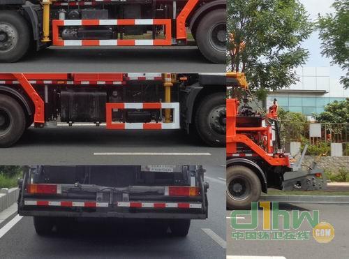 該車為瀝青路面養(yǎng)護專用作業(yè)車,裝備有瀝青混合料恒溫控制料倉、吊機、熨平攤鋪等專用裝置,吊機型號SQ5ZB2,重量 2100Kg,最大起升載荷 5000Kg,吊機的作用為裝卸瀝青混合料.前懸1780mm時,因前部安裝抬舉機構(gòu)用于懸掛壓路機,側(cè)防裝置材料為Q235A,與汽車大梁用螺栓連接。后防護裝置采用車身結(jié)構(gòu)代替,,材料Q235A,車身結(jié)構(gòu)離地高490mm,該車僅選用軸距4350+1350mm底盤。 隨底盤裝備ABS,ABS生產(chǎn)廠家:東科克諾爾商用車制動系統(tǒng)(十堰)有限公司;型號:3631010-C2000。隨底盤選裝駕駛室,駕駛室頂部裝飾燈為選裝件。