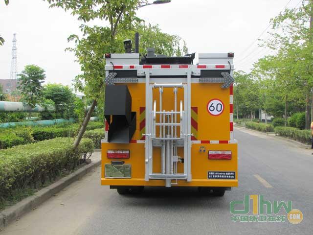 該車僅選用軸距為4400mm;該車專用裝置:瀝青箱,混合料攪拌箱,專用功能:道路施工、道路養(yǎng)護(hù)作業(yè)。側(cè)防護(hù)裝置材料為Q235A,其連接方式為:螺栓連接,該車為專用作業(yè)車后部專用裝置代替后護(hù)欄,離地高度410mm,前支架前伸350mm。ABS系列號(hào):ABS/ASR-24V-4S/4M,廠家:襄陽(yáng)東風(fēng)隆誠(chéng)機(jī)械有限責(zé)任公司。
