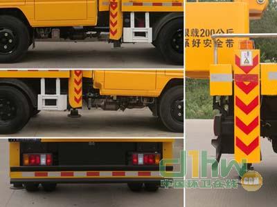 后伸:480mm;隨底盤選裝駕駛室;選裝吊鉤;側(cè)面防護及后下部防護裝置材料材質(zhì):Q235,連接方式:焊接加螺栓連接;后下部防護裝置斷面尺寸(寬×高):30×200(mm),離地高度:350mm;ABS系統(tǒng)型號:APG3550500A,ABS系統(tǒng)生產(chǎn)廠家:浙江亞太機電股份有限公司;主要專用裝置為折疊臂,用于搶修電力、通訊、路燈等高空作業(yè).
