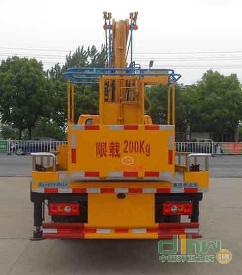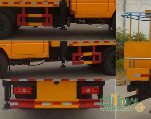 該車用途為搶修電力、通訊、路燈等高空作業(yè)。主要裝置為升降平臺,作業(yè)臂。隨底盤選裝駕駛室;當整車長度為7560mm時,該車前伸850mm,車輛后伸200mm;當整車長度為6850mm時,前伸為340mm。側(cè)、后防護采用材料為Q235,焊接連接;后防護截面尺寸(寬×高)mm:50×180,離地高度400mm。ABS系統(tǒng)型號:APG3550500A,ABS系統(tǒng)生產(chǎn)廠家:浙江亞太機電股份有限公司。