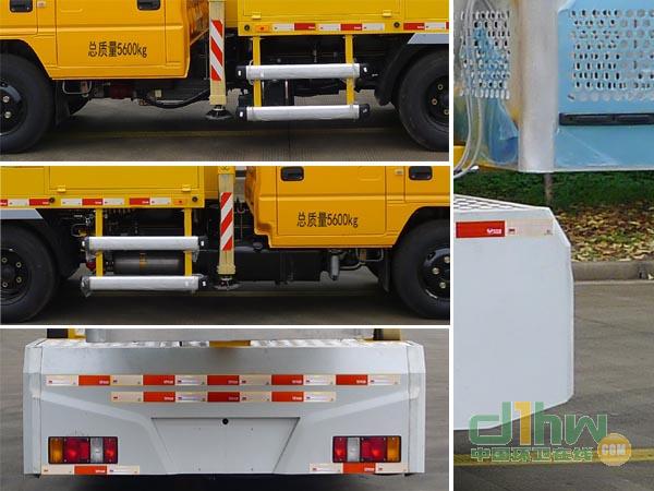 車長(zhǎng)7100時(shí)后伸675mm;車長(zhǎng)7210時(shí)后伸785mm。隨底盤(pán)選裝前照燈,前霧燈,前位燈,前轉(zhuǎn)向燈,前臉,前保險(xiǎn)杠;選裝組合尾燈,選裝后視鏡,選裝門(mén)框下邊框黑色貼膜。選裝封閉式作業(yè)平臺(tái)。本車型專用功能為通過(guò)臂架折疊伸縮,轉(zhuǎn)臺(tái)回轉(zhuǎn),將工作平臺(tái)舉升至作業(yè)位置。專用裝置主要包括臂架,轉(zhuǎn)臺(tái),工作平臺(tái),支腿等。ABS系統(tǒng)型號(hào):APG3550500A,ABS系統(tǒng)生產(chǎn)廠家:浙江亞太機(jī)電股份有限公司。側(cè)防護(hù)材料6063鋁,采用螺栓連接;后下部防護(hù)為裙板式結(jié)構(gòu),材料Q235鋼,下緣離地高度400mm。