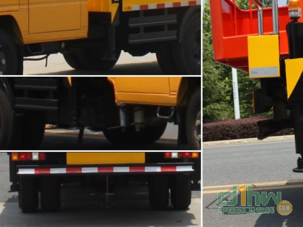 隨底盤選裝駕駛室;前伸:760mm,后伸:420mm;ABS系統(tǒng)型號(hào):APG3550500A,ABS系統(tǒng)生產(chǎn)廠家:浙江亞太機(jī)電股份有限公司;側(cè)面防護(hù)裝置及后下部防護(hù)裝置采用Q235材質(zhì),連接方式為焊接;后下部防護(hù)裝置斷面尺寸(寬×高)(mm):30×100,離地高度:525mm.