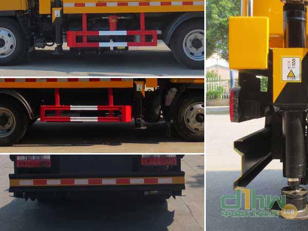 前伸與前懸對(duì)應(yīng)關(guān)系(mm):365/1090,390/1065;后伸150mm;隨底盤選裝駕駛室;吊鉤為選裝件;側(cè)面防護(hù)及后下部防護(hù)裝置材料材質(zhì):Q235,連接方式:焊接加螺栓連接;后下部防護(hù)裝置斷面尺寸(寬×高):30×200(mm),離地高度:400mm;ABS控制器廠家/型號(hào):廣州科密汽車電子控制技術(shù)股份有限公司/CM4XL-4S/4K(4S/4M);選裝ABS,ABS廠家/型號(hào):武漢元豐汽車電控系統(tǒng)有限公司/YF8;主要專用裝置為折疊臂,用于搶修電力、通訊、路燈等高空作業(yè)